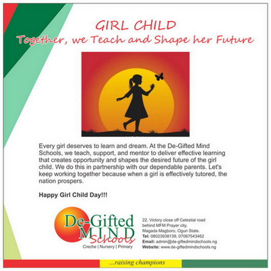 Girl Child: Together, We Teach And Shape Her Future by Admin | Oct 11, 2025 | blog | 0 comments Happy Girl Child Day! Submit a Comment Cancel replyYour email address will not be published. Required fields are marked *Comment * Name * Email * Website Save my name, email, and website in this browser for the next time I comment.