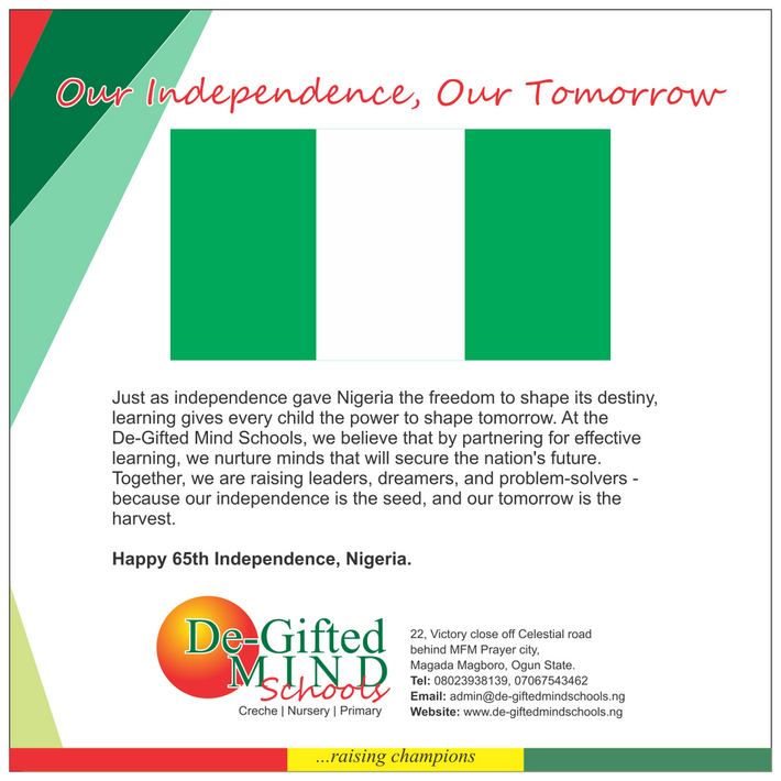 Our Independence, Our Tomorrow by Admin | Oct 1, 2025 | blog | 0 comments Happy Independence Nigeria. Submit a Comment Cancel replyYour email address will not be published. Required fields are marked *Comment * Name * Email * Website Save my name, email, and website in this browser for the next time I comment.